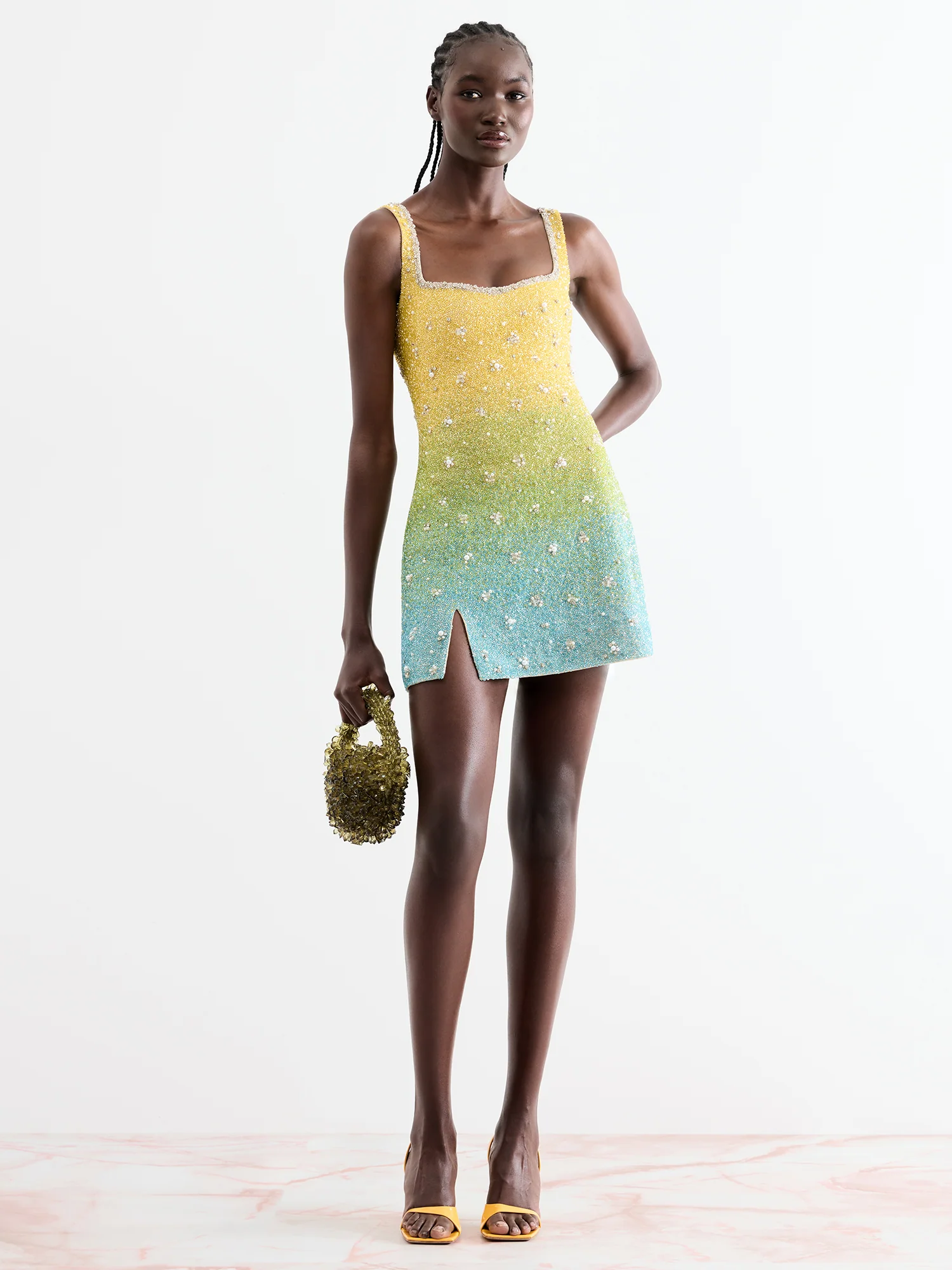 Evoking the heat and vibrancy of island shores, the Gradient Mini Dress in Tropical features a bright blend of sun-drenched hues. This is the perfect mini dress for sunsets, and nights that see the sunrise. The Tropical Gradient Mini is exclusive to the Clio Peppiatt website.